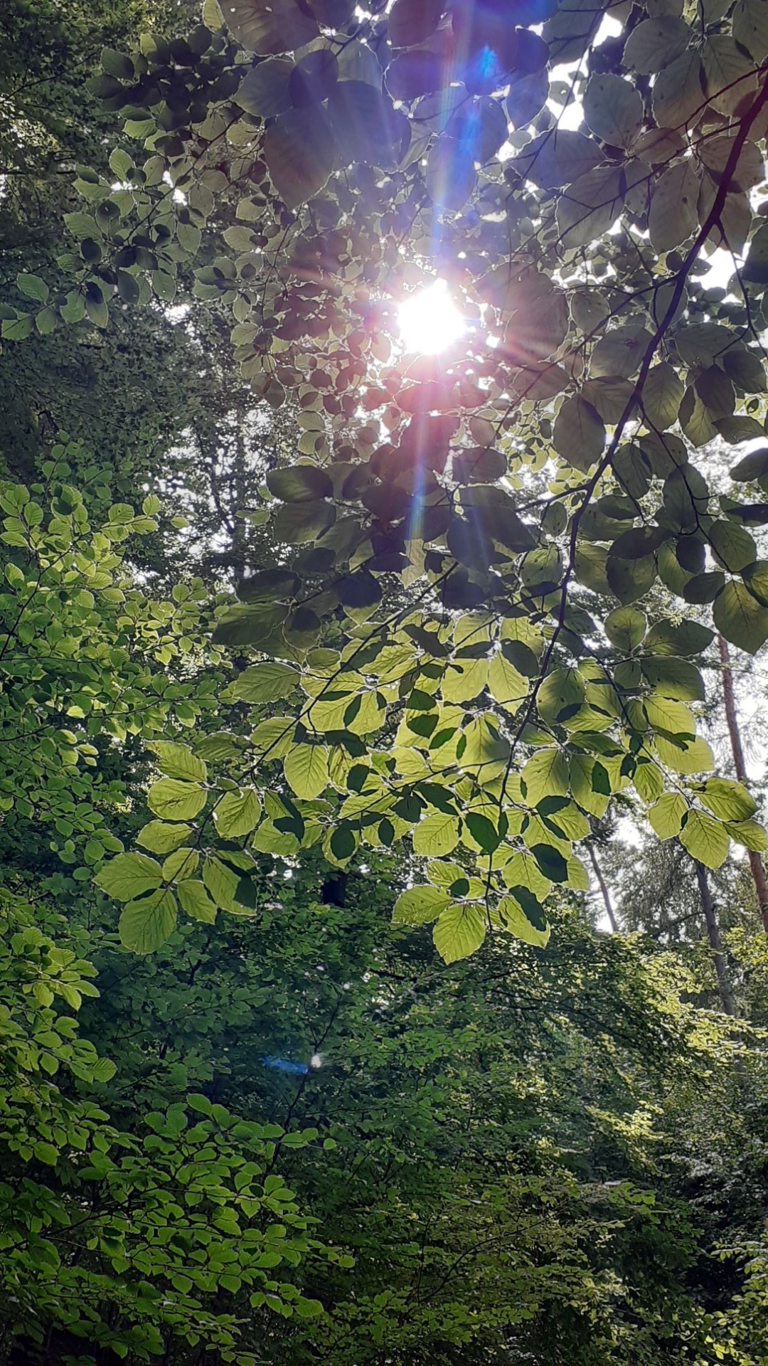Wir erkunden eines der noch sehr wenigen Funk-unbelasteten Waldstücke im Gramschatzer Wald mit unseren Sinnen und tanken neue Energie